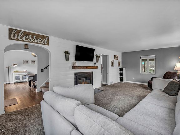 Welcome home to 123 35th Street NW, a move-in ready, completely remodeled 3 bedroom, 1.5 bath all brick home filled with character! When you pull in, you will be blown away by the curb appeal and front porch. Step inside and you'll instantly fall in love with the warmth yet modern feels this home radiates. The entryway features curved doorways, closet space and a great landing spot for guests' shoes and coats. The huge living room spans the width of the home and offers a gas fireplace and shiplap focal wall. The fully remodeled kitchen features all new stainless steel appliances, corian countertops and an abundance of shaker style cabinet space. The dining room offers picture windows with natural light pouring in. A half bath completes this first floor. Upstairs you will find 3 large bedrooms with ample closet space and a remodeled full bathroom. The lower level was newly finished and features new flooring, drywall, wood burning fireplace and more! The laundry area and storage room offers a great space for storing seasonal decor and more! The garage has stairs that go into the basement and is extremely deep; great for storing kid's outdoor toys or tools. It also gives access to your private covered patio and fenced-in backyard. This backyard is perfect for entertaining guests or hanging out with the kids! Located close to the Football Hall of Fame, highway access, restaurants, shopping and more! Updates include all new lighting throughout, new fridge, new dishwasher, finished basement (completed in 2025), new roof (2014), new hot water tank (2024), updated paint, and more! This home is truly a gem and won't last long! Call today to schedule your private showing!