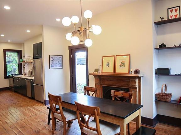 Truly unique renovation of a historic home in Lawrenceville. Very rare for the neighborhood, the home has a large backyard, as well as an additional side lot. Historic wide pine flooring throughout. First floor has open concept kitchen/dining room with tons of natural light. Living room in the rear of the house with access to covered rear patio and side yard. Living room has nearly twenty foot ceiling. Plenty of natural light throughout first floor, as well as a first floor powder room. Amazing full bath on the second floor with stand alone claw foot tub as well as walk in shower. High end tile and and fixtures throughout. Three large bedrooms split between the second and third floors. Visually stunning home with exposed beams, rolling barn door, exposed brick, built in book shelves. Very unique renovation that was done by owner occupant, and not a "flip." Total renovation. All new plumbing, electric, roof, zoned furnace, AC, hot water tank, insulation, windows since 2014.