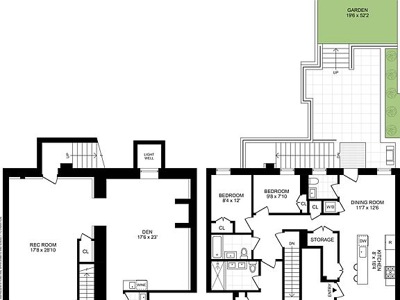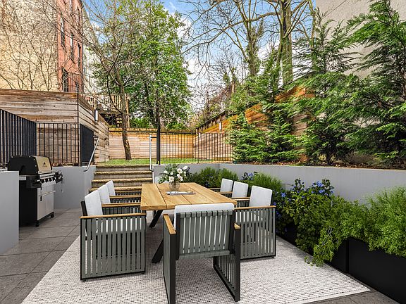 Residence One at 123 6th Avenue offers quintessential Brooklyn charm with modern living and resides in coveted Park Slope. Residence one is a sprawling 3 bed - 2.5 bath duplex apartment that has been meticulously renovated and features high ceilings, chevron wood flooring and central heating and cooling throughout. Best of all, enjoy your large private garden which is the perfect spot to enjoy your morning coffee, garden, or host a BBQ with friends and family. Enter through the grand foyer and into the upper level of the home that offers a spacious living and dining area. Appreciate the large windows with sunny western and eastern exposures which allow for an abundance of natural sunlight to flood into the home throughout the day. The chef's kitchen is equipped with a massive eat-in island, custom Marfa cabinets, sleek Cambria quartz countertops with backsplash, a chic Hansgrohe faucet, and high-end stainless-steel appliances from Viking and Liebherr. Conveniently located off the kitchen is a large storage room, a luxurious powder room, and a washer/dryer closet. The primary bedroom boasts a wall of reach-in closets and a spa-like en-suite bathroom complete with a custom floating double vanity, a Toto toilet, Calacatta porcelain tile walls, steel bone tile floors, and a walk-in shower with Hansgrohe fixtures. The second and third bedrooms also have large private closets and easy access to a second full bathroom located in the hall. The lower level of the home, which also offers backyard access, features a recreation room, a huge walk-in storage closet, and a large media room with a wet bar, powder room, and a custom brick wine cellar. Either space can easily be used as a home office, crafts room, fitness studio, or playroom. 123 6th Avenue is a brand new, brownstone condominium and is perfectly nestled in one of Brooklyn's most sought out neighborhoods. The building offers close proximity to Grand Army Plaza, Prospect Park, and Barclays Center, as well as some of the finest restaurants, bars, cafes, and shops Brooklyn has to offer. The building features a virtual doorman system and is conveniently located near the 2/3/4/5/B/D/N/Q/R subway lines, as well as multiple bus services and citi-bike docs close by.