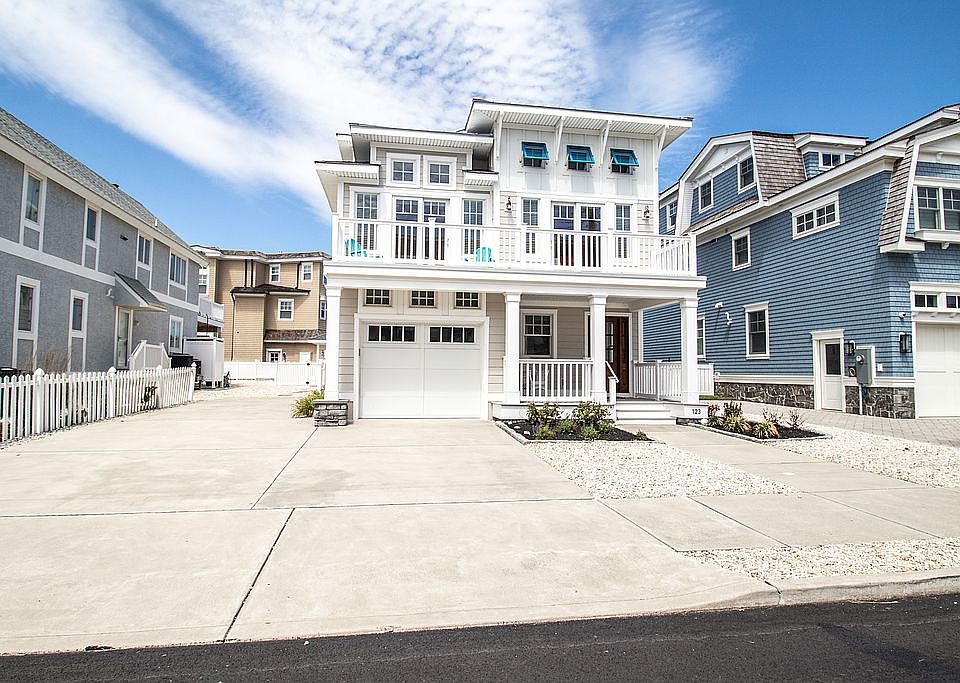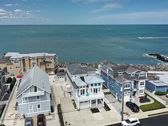 SENSATIONAL OCEAN VIEWS INCLUDING THE ATLANTIC CITY SKYLINE AS FAR AS THE EYE CAN SEE!!! Beautiful 3 story upside down style home with five bedrooms and five full baths. The architecturally clean lines of the home pop with colorful Bermuda shutters. The first floor has a sun filled entrance foyer with wide hallways leading to two bedrooms, one with ensuite bath, hall bath, laundry room and a family room with wet bar accessing a large deck overlooking a heated in ground swimming pool. There are beautiful ocean views from the first floor. A striking staircase takes you to the oceanfront great room featuring a living area with fireplace, expansive kitchen with two tone cabinets, oversized center island, stainless steel appliances, pantry and granite tops. The great room also has an oceanfront dining room and all areas have gorgeous water views and access to a covered deck. Two second floor bedrooms have dramatic vaulted ceilings, ensuite baths, and a private sun deck with views. The third floor has a large waterfront master with stunning water views, fabulous master bath, loft sitting area / office and an oversized sun deck. Other special features include attached garage, detached storage area that could easily be converted to a cabana, quarter sewn oak floors throughout, on demand hot water and beautiful trim detail. The home is sold furnished per an inventory list. Home is easy to show and available for immediate occupancy.