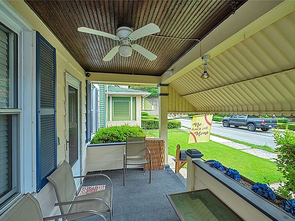 Welcome home to this adorable over 2 story home with level fenced yard, shed, and concrete pad for 2 off street parking spots. Updated kitchen with all appliances included. Formal dining room. Spacious living room. Enclosed back porch/mud room. Large master bedroom. Walk up attic with two finished bonus rooms. Updated full bath. Furnace and air conditioning upgraded in 2011. Thermo Twin multi-pane windows. Enjoy those warmer days and evenings on the front porch. Freshly painted. Loads of basement storage. Updated electrical panel. Hard wood flooring under carpeting that can be refinished.