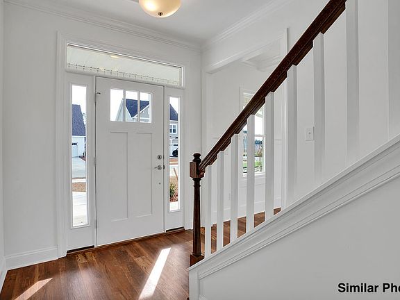 The rocking chair style front porch immediately welcomes you and makes you feel right at home in this open 4 bedroom, 3 and ½ bath, 2-story home. This Hall Crest has a bright and spacious living area featuring ceilings with beam accents and natural gas fireplace that flows seamlessly to the kitchen, breakfast area, sitting room, and large covered porch. This kitchen will wow you with the large center island, granite or quartz countertops, tile backsplash, stainless steel appliances, including natural gas stove, and pantry! The first floor is complimented by a formal dining area with beam accented ceilings, drop zone area off the 2-car garage and ½ bathroom. Upstairs there is plenty of room for all! The master suite features a tray ceiling, a walk-in closet leading to additional storage, and a spacious bathroom with a fully tiled walk-in shower, a water closet, and two vanities with quartz countertops. 3 guest bedrooms, 2 additional bathrooms, and a laundry room complete the 2nd floor.