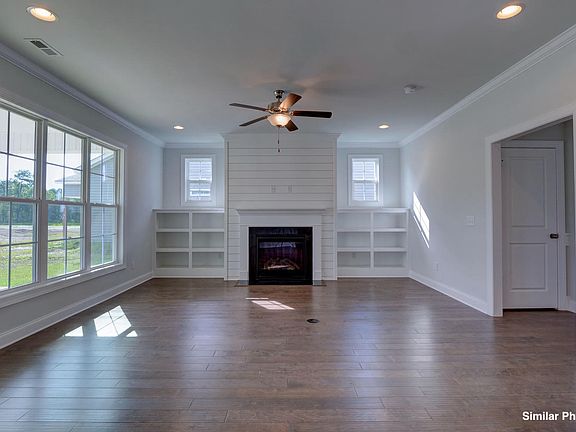 This spacious home offers plenty of room for all, with 4 bedrooms and 2.5 baths. The main level includes a study, along with an open family room connecting to the kitchen with a dining area. No detail has been left behind in this home. This kitchen features a large center island, quartz countertops, subway tile backsplash, soft close drawers and stainless-steel appliances including a natural gas stove with hood vent. The bright and spacious family room has a shiplap fireplace with natural gas logs and opens to the large, covered porch. Upstairs the master suite features, a trey ceiling and suited bathroom with double vanities, walk-in shower, separate soaking tub and walk-in closet with custom wood shelving. Finishing out the upstairs, you will find 3 additional bedrooms, a bathroom with double vanity and a laundry room.