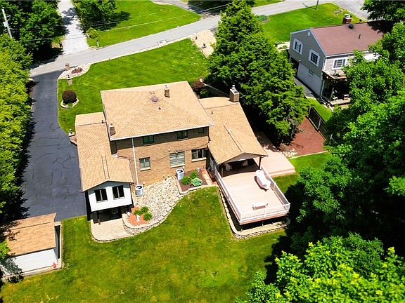 Whether you are seeking a peaceful retreat or a welcoming home for family gatherings, 123 Aberdeen will check off all your boxes. Upon entering through the stunning double doors, the feeling of elegance yet comfort and versatility of this home will surely impress. The formal living and dining room on either side flanks the two-story foyer with its grand staircase. The dining room flows into the cozy family room, which includes a gorgeous stone wall and fireplace. You will be in awe as you enter the expansive eat-in kitchen. It is adorned with custom Amish-made cabinetry featuring pull-out shelving, a pantry, a wet bar, a spice cabinet, granite countertops, and much more. An added bonus is a custom coordinating kitchen island with 2 stools, a wine cabinet, and a step stool. You will enter the owner's suite as you pass the convenient half bath. It is immediately obvious that this is a place for reprieve and relaxation. Unwind from your busy day while in front of the fireplace, which boasts a custom-made mantle to match the bedroom furnishings. The Master bath is also designed with custom Amish-built cabinetry and a large double shower. Just off the suite is a relaxing sunroom overlooking the serene backyard. Perfect for morning coffee or to unwind before bedtime. On the home's second level are three nice-sized bedrooms, a large walk-in closet, and a full bath with a double vanity. The lower level of the home contains the oversized two-car garage, utility room, bathroom, and large rec room with a handsome bar for entertaining. The landscaping of this home is meticulous and professionally maintained. The back and side deck make for an all-around great time, whether you are looking to entertain, play in the private backyard with family, or sit quietly and watch the wildlife. This home's location is minutes from the Veterans Memorial Bridge that connects Ohio and WV. and is near all local conveniences.