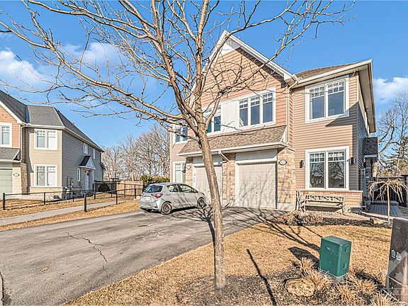This GORGEOUS Tamarack Semi Detached home offers flexibility & functionality to satisfy all your family's needs. Spanning over 2100sqft this impressive layout has a one-of-a-kind open concept kitchen w/high end built-in appliances & a waterfall quartz counter island, a sun-filled living/dining area w/corner fireplace, a versatile main floor bedroom/office/flex rm AND a portion of the garage has been borrowed creating a BONUS home office space. The second level has 3 bedrooms, a main bath & features an impressive primary retreat w/walk-in closet & 5pc ensuite. The finished basement w/2nd fireplace completes this great floor plan. The spectacular exterior features perennial gardens & a fully fenced rear w/expansive deck & NO REAR NEIGHBOURS as the property backs onto beautiful green space & trails that lead to the Jock River. Lane parking big enough for 2 cars. Preemptive offer received and will be reviewed at 3:45pm April 7th 2022 - please have all offers in by 3:30pm.