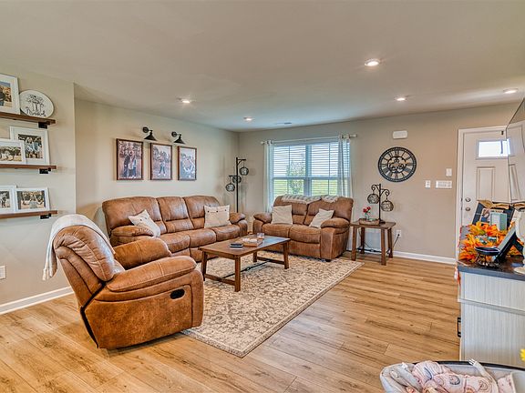 Completed in early 2025, this better-than-new 4-bedroom, 2.5-bath home offers the ideal blend of modern design and everyday functionality—just 2 miles from I-65 Exit 6 for an easy commute to Bowling Green or Nashville. Located in a new subdivision, the home features a stylish Hardie Board exterior and a 2-car front entry garage. Inside, the open-concept floor plan includes a spacious kitchen with quartz countertops, a large island perfect for gathering, and seamless flow into the main living area. A versatile flex space on the main level provides room for a home office, playroom, or additional living area. Upstairs, all four bedrooms offer comfort and privacy, including a generous primary suite with a private bath. Step outside to a fully fenced backyard with a patio—perfect for entertaining, pets, or simply relaxing in your own space. Whether you're looking to upsize, downsize, or relocate to Franklin, 123 Amberleaf Circle checks all the boxes for style, convenience, and value.