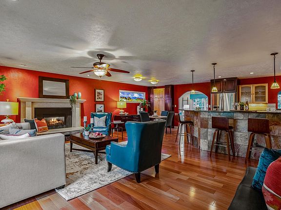 This is a great opportunity to own a modern single level home on a large Barranca Mesa lot! Immediately as you enter this home the attention to detail and finishes will grab your attention. Spacious kitchen that is part of the great room has been updated with granite countertops, tile backsplash with glass inlays, all stainless steel appliances, large island with raised breakfast bar and plenty of cabinet space. Hard wood floors continue from kitchen into family room that boasts a gas fireplace with an impressive travertine mantle. Pass through from kitchen to formal dining room with beautiful brick floors, gas stove and adjacent to formal living space. The guest bathroom has been updated that which include custom cabinet with granite tops, tiled floors and tiled bath shower combo. Large primary suite with sitting area, dual closets, gas fireplace, large jetted tub and makeup vanity. You have access to a very private backyard from both the primary bedroom and dining room. Once outside you will enjoy a large semi-cover brick patio, mature lush landscaping, hot tub and multiple out buildings. Skylights and light tubes throughout providing warm natural light. Great curb appeal also with tasteful landscaping. Don't miss this opportunity!