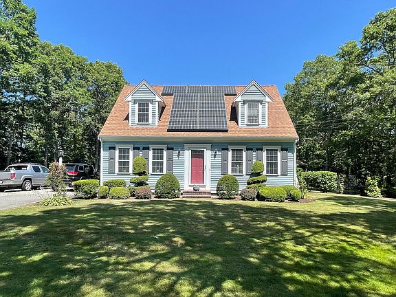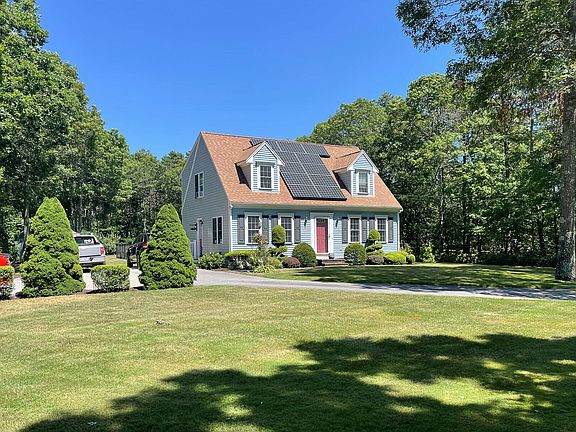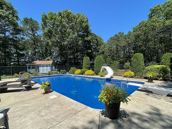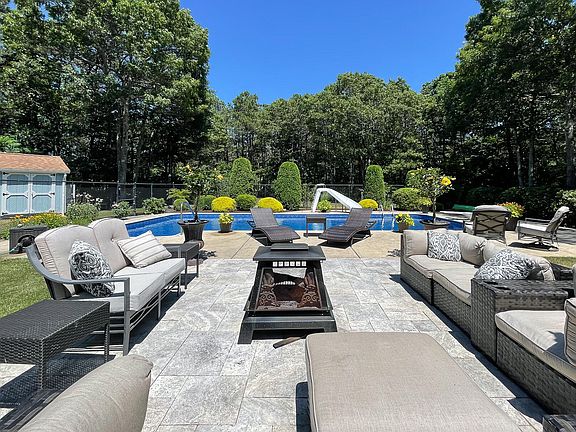Proudly displaying this well-constructed presence of a Cape Cod style home! This 3-bedroom, 2-bathroom charmer is perfectly situated on nearly 2 acres. Exterior includes a stunning oasis, with composite deck, inviting patio, with a beautiful in-ground pool and is professionally landscaped with irrigation. Also: custom built pool house. The interior embraces you with an open layout, natural light, stylish fixtures and neutral decor. A chef's delight simmers in the roomy, new kitchen equipped with pantry, premium appliances, island with seating, and granite counters. Tranquil primary bedroom, and two other bedrooms, are on the second floor for privacy, designed with plenty of wardrobe storage and ready to reflect your good taste in decor. Finished basement doubles as rec room and a multi-purpose room. Close to Commons, parks, and beaches. Many updates, including new kitchen, new bathroom, newer roof, flooring. Your future self will thank you for acting fast on this one!