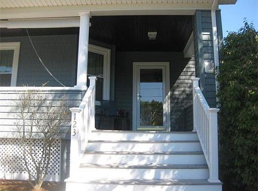 Desirable Forest Avenue neighborhood! Cute as a button. Sit on the lovely front porch and read your morning paper or enjoy your coffee on the massive deck privately situated on the side of the home.This is the neighborhood you want to live in. New roof, siding in 2012. New Harvey windows. If you like to cook this kitchen is for you. Six burner gas stove and three ovens. Refrigerator and ovens new in 2010. The kitchen area is a perfect place for entertaining, opening up to what could be a dining room or family room with sliders to that massive deck which is another room in the good weather. Plenty of room for those summer cook-outs. Sit by the lovely fireplace in the light and bright living room on a cold winter's night. First floor full bath lovely and updated. Second floor has three bedrooms and another full bath with a very large closet for storage or possibly enlarging the present bathroom. Hardwood under carpeted rooms upstairs. Garage and pretty plantings. Walk to beach, train
