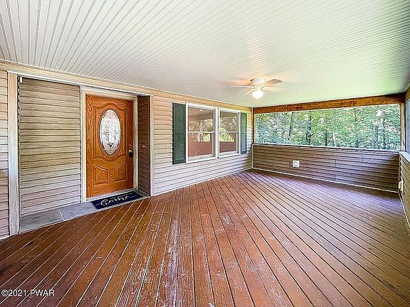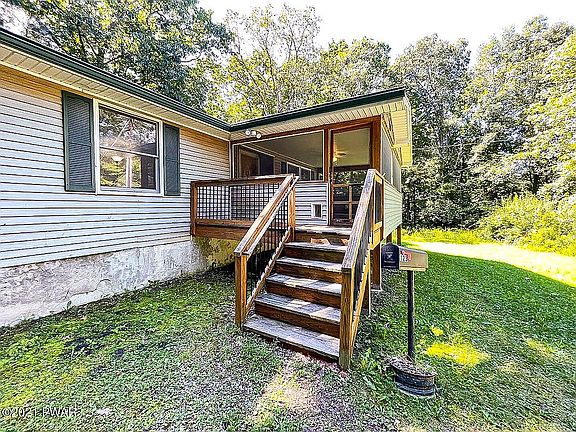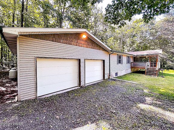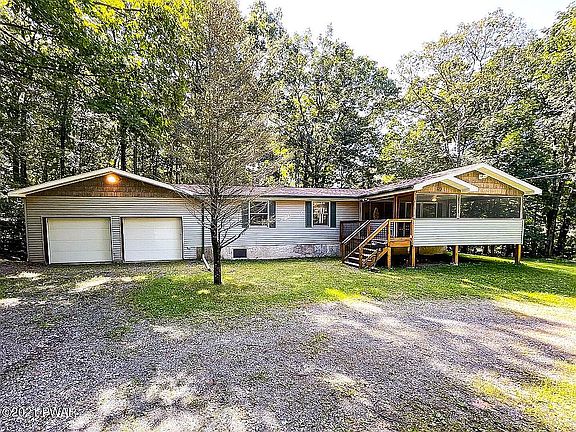 Great location! 2 Minutes to Lake Wallenpaupack and walking distance to the Elementary, Middle, and High School. This home features an open Living Room, Dining Room and Kitchen area upgraded with SS appliances, tile backsplash and a sit at center island. This home has 3 bedrooms, 2 full bathrooms, and a full basement, partially finished with a family room w/ stone fireplace, a large unfinished storage area and laundry room. Attached oversized 2 car garage with high ceilings. Spend some down time relaxing in the screened in front porch, on the back deck or patio area. Low Taxes!