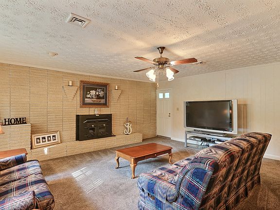Located in an established Rincon neighborhood, this lovely 2,140 sq ft home features 3 bedrooms, 2 full baths and sits on a corner lot on almost three-quarters (.69) of an acre. As you enter the newly carpeted family room, you will admire the wood-burning fireplace. The kitchen has freshly painted wood cabinets with new fixtures, as well as, an electric stove, hood, oven, and dishwasher. You will find laminate flooring in the kitchen, breakfast area, dining room, and hallway. The living room may also be used as a playroom, office, or recreation room. The Jack and Jill style full bathroom connects to the hallway, as well as, the two bedrooms. The master bedroom features a vanity, bathroom, and shower. From the fully glassed in sunroom, you can view the fenced in backyard, which is great for entertaining, small children's play area, and your favorite pets. The 16' x 16' utility building is built on a slab and has electricity provided in it. This home is all brick, including the chimney.