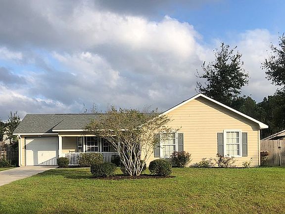 A 4 bedroom home in popular Lakes neighborhood, near a park and great schools! This home is also under 6 miles to Kingsbay Naval Base! Wood laminate floors, granite counters, trendy soft close cabinets w/pull outs plus pantry. Updated fixtures, tile floors in bathrooms, white wooden blinds on all windows, neutral color scheme throughout, new neutral carpet installed in bedrooms. Large fenced backyard with a storage shed , garage has floored attic space, and a rocking chair front porch for relaxing. French doors in the kitchen dining area open up to the backyard patio, which is great for extra guests and entertaining. Fairly new stainless steel appliances, architectural shingled roof is 3 years new.