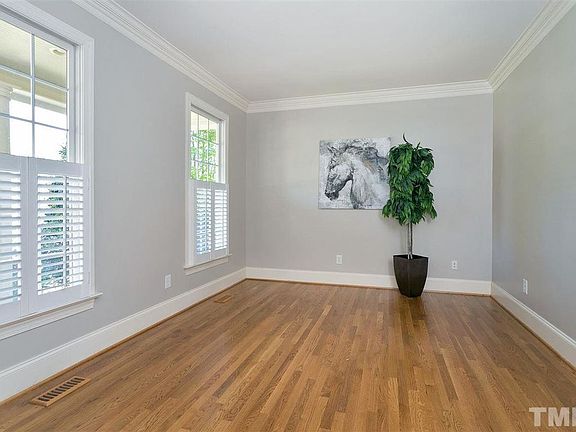 Exquisite executive home in Cary's sought-after Carpenter Village. Private cul-de-sac lot. Wonderful outdoor space with patio. Inside you will find refinished hardwood floors, fresh paint, gourmet kitchen with gas cooktop, double ovens, large island, pantry & more. Custom builder touches such as detailed trim work, built-ins, butler's pantry. Open concept floor plan. 4th bedroom (or bonus room) has full bath. Finished third floor has lots of flex space. 2 parks/playgrounds within a block or two of home.