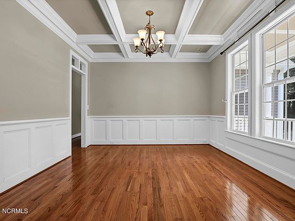 Nestled in the scenic gated waterfront community of Chadwick Shores in Sneads Ferry, NC, this charming Cape Cod-style home invites you to experience coastal living at its finest. The inviting front porch provides ample room to relax and enjoy refreshing coastal breezes, w/your favorite beverage. Venture inside to a spacious open foyer that gracefully leads into a lrg living room, featuring a cozy gas fireplace, vaulted ceilings, & stunning hardwood floors that flow seamlessly throughout the home. Entertaining is a breeze in the expansive formal dining rm, adorned with a coffered ceiling, elegant moldings, and chair rails. The well-appointed kitchen offers generous cabinet space, w/ a convenient counter for casual meals or a cozy nook for those quick meals. The primary bedroom, conveniently located on the first floor, boasts trey ceilings, a WIC, an en-suite bathroom complete with a jetted soaking tub, a walk-in shower, linen closet, and double vanity sinks. Two additional guest rooms located on the first floor, along with a full bathroom & laundry room that connects to the two-car garage. Upstairs, discover a versatile fourth bedroom with an adjoining full bathroom, a large bonus room perfect for recreation or relaxation, and a walk-in attic for added storage. Step outside to unwind on the spacious screened-in back porch or enjoy the concrete patio, ideal for grills, fire pits, & additional outdoor seating. The fully fenced yard includes a shed for extra storage, ensuring you have space for all your outdoor essentials. As a resident of Chadwick Shores, you'll appreciate the community's waterfront park featuring a fishing dock, picnic tables & grills, a pavilion, playground & a sandy water's edge. Located just a few miles from North Topsail Beach shopping centers, and Marine bases, this home perfectly blends convenience & coastal charm. Don't miss your chance to experience all that Chadwick Shores has to offer. $5K from sellers towards closing costs!