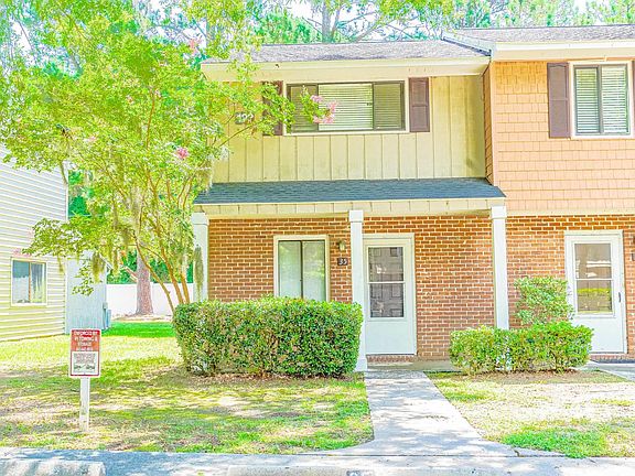 Welcome to this charming two-story townhome in the heart of Pawleys Island called Chapel Creek Villas, offering a distinguished brick front accent that adds charm to the exterior. This end unit provides extra natural sunlight and features a welcoming front porch area with columns to enhance the facade. Inside you will find a large eat-in kitchen space and open to the family room. Freshly painted throughout, new flooring and quartz counter tops. The wood burning brick fireplace is an added feature where you can enjoy the warmth of a fire or escape through the sliding glass doors to the back enclosed porch/ bonus room area for a little privacy. Available large storage room with shelving that could hold all your beach stuff or your bicycles for that afternoon bike rides. Located a short distance to the beach, shopping, grocery stores and the best restaurants around.