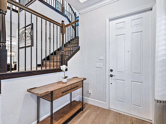 Experience luxurious lake front living in the highly sought-after Rialto community with this stunningly renovated Murano model home. Nestled on a Premier Lake Front Lot, this residence offers the perfect blend of elegance, comfort, and modern convenience. Originally designed as a 4-bedroom layout, this home has been transformed into a spacious 3-bedroom, 2.5-bath haven, complete with a loft that presents endless possibilities. The custom boutique-style primary closet, which could serve as a nursery, office, or easily transition back to a 4th bedroom, adds a touch of versatility to this splendid layout. Spanning 3,024 square feet, the home welcomes you with exquisite porcelain wood grain tile flooring throughout the lower level. The heart of the home, a chef's kitchen, boasts new quartz counters and state-of-the-art stainless-steel appliances with a new dishwasher, and self-cleaning convection stove with an air fryer. Kitchen improvements include a new backsplash, faucet, soap dispenser in countertop and disposal, rewired under cabinet lighting, rebuilt center island to support new and larger countertop with raised outlets at both ends for easy counter use with phone/device chargers. Quality engineered wood flooring graces the upper level, leading you to an oversized loft, perfect for entertainment or relaxation. The opulent primary suite is a retreat in itself, wake up to captivating lake views to the north. The primary suite features electronic blackout shades, extra-large double walk-in closets with built-ins and a generous primary bath with a frameless shower enclosure. New outlets in the primary suite bathroom sink area, and an adapter for the soaking tub chandler.