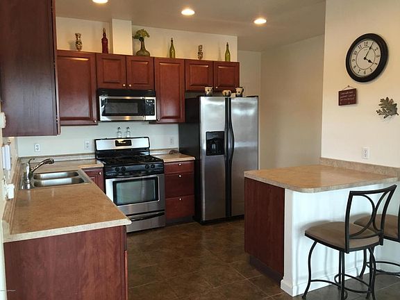 This home features 9' ceilings and an open floor plan located on one of the nicest half acre lots in this subdivision. Enjoy hilltop views of spectacular Alaskan Sunsets from this nicely landscaped backyard. The garage is a must see--3 car with a back extension currently used as a workshop but could store a trailer, etc. There is a trail to the Kenai River just a street down.