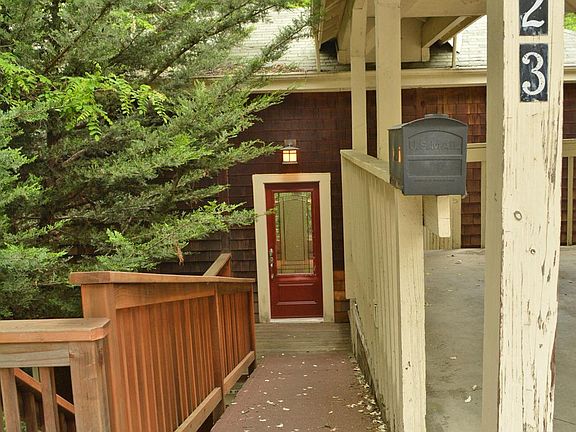 Unique riverfront home in downtown Nevada City with charm, character and loads of potential! Two story home with living room with new gas fireplace and hearth, sitting room and bedroom on main level; lower level has delightful kitchen, step down family room, formal dining area and 2nd bedroom. Both bathrooms and kitchen are updated and every room overlooks Deer Creek. One car off street carport and extra storage below. Private patio off family room and upper deck overlooking the creek. Private, compact and one block to the center of town.