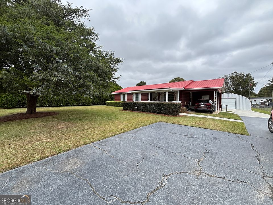 This well maintained home built in 1965 has been updated. Move in ready. New windows in 2024. New flooring in owner's suite & fresh neutral paint in 2025, installed new windows, updated panel box, installed metal roof added front porch approx 8 yrs ago. Refrigerator & hot water heater replaced 2 yrs ago. in 2018 removed divider wall between kitchen and living room, installed beam. Allows for open floorplan. All electric home. Under termite contract with Terminex. Clothes washer and dryer shall remain with the home. City water & septic tank (pumped 3 yrs ago) but no city taxes. Outside the city limits. Spacious shop 30 X 30 shop w/ rollup door. Shop has spray foam insulation, wired (for 220) & water to exterior of building. Paved driveway.