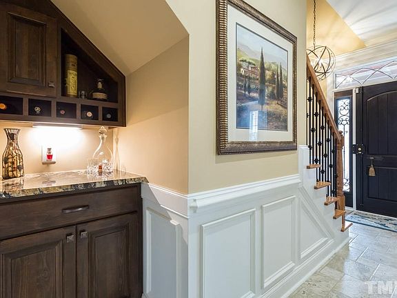Eat in Kitchen w/hrdwds, Granite counter tops, custom cabinets, soft close drawers, pull out pot drawers, 6 burner gas stove, farmhouse sink, island, & Butler's pantry. Mudroom. Laundry w/utility sink & linen closet. Formal DR w/wainscoting & coffered ceiling. 1st flr Master w/Trey ceilings & WIC. Dual vanity & tile surround walk in shower in Mstr bath. Gas log fireplace in FR. Media Rm w/surround sound, projector, & screen. Bonus. Lot of unfinished storage. EZ Screen porch. Patio. 3 Car Garage