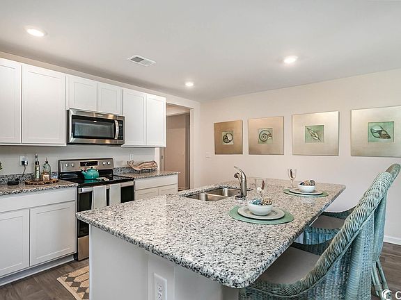 You will fall in love with country setting of this boutique community nestled on the south end of Myrtle Beach in the St. James School district, close to Murrells Inlet, shopping and all the Grand Strand has to offer. Our Cali plan is a thoughtfully designed one level home with a beautiful, open concept living area that is perfect for entertaining. The kitchen features an oversized island, a walk-in pantry, and stainless Whirlpool appliances. The large owner's suite is tucked away at the back of the home, separated from the other bedrooms, with a walk-in closet and spacious en suite bath with a double vanity, 5' shower, and separate linen closet. Beautiful and durable vinyl flooring in the main areas gives the look of wood with easy care and cleanup! Spacious covered rear porch adds additional outdoor living space. This is America's Smart Home! Each of our homes comes with an industry leading smart home package that will allow you to control the thermostat, front door light and lock, and video doorbell from your smartphone or with voice commands to Alexa that will allow you to control the thermostat, front door light and lock, and video doorbell from your smartphone or with voice commands to Alexa. *Photos are of a similar Cali home. (Home and community information, including pricing, included features, terms, availability and amenities, are subject to change prior to sale at any time without notice or obligation. Square footages are approximate. Pictures, photographs, colors, features, and sizes are for illustration purposes only and will vary from the homes as built. Equal housing opportunity builder.)