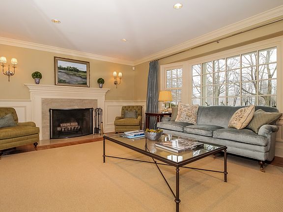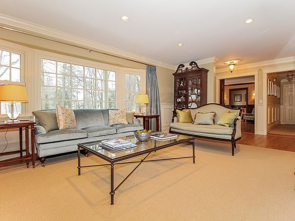 this nantucket style expanded cape sits on a lush green acre near town and cherry lawn park. Beautifully designed and maintained, this home features wonderful trim work throughout. Warmth exudes from this five bedroom, 3 and half bath home including the family room with a cathedral ceiling and field stone fireplace. Offering an office and a mahogany lined den as well as a basement playroom, this home has room for everyone. Plenty of storage can be found in the four bedrooms upstairs and the bedroom suite downstairs is ideal for guests. the blue stone patio opens to the large back yard and is perfect for outdoor entertaining. truly a must see property for the discerning buyer.