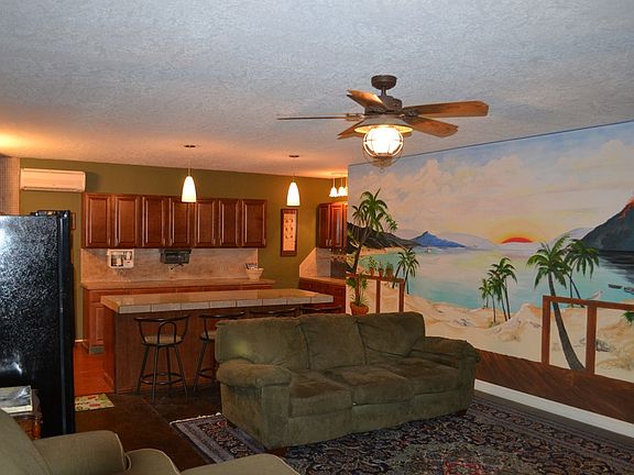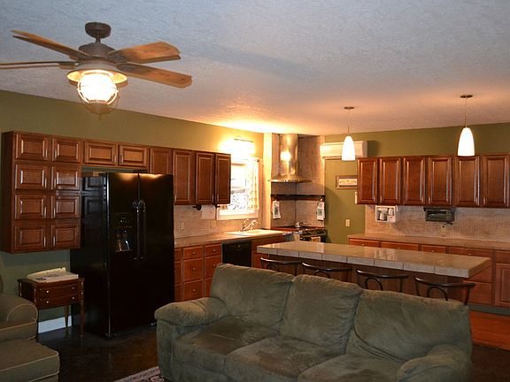 Custom 4 bed, 3 bath home is truly one of a kind with 8" concrete walls- 2 kitchens, 2 laundry rooms, 2 family rooms & could be mother-in-law suite. Super insulated & features a ventless energy efficient cooling & heating system. 4 outside porches, 24x24 storage bldg., 28x34 pole barn, 18x31 shop & fabulous tree house on 1.14 acres.