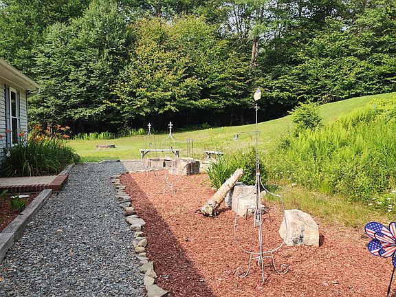 NATURE LOVER'S DREAM. Ranch home w/ 3 acres offers quiet comfort & natural beauty. No HOA rules mean you have freedom to enjoy your property to the fullest. Inside, the 3-bed, 2-bath home exudes warmth & tranquility. The layout seamlessly connects the living, dining, & kitchen areas, creating a space perfect for entertainment. The kitchen features ample cabinetry & a breakfast nook. Large windows provide abundant natural light. Cultivate a garden; grow fresh vegetables & colorful flowers or raise chickens! Relax on the back deck or in the 10x24 breezeway. The 2-car garage w/a HUGE bonus room (23.5x14.33) is perfect for hobbies. Versatile space can be a gym, studio, rec room, or home office. Enjoy Pike County's many hiking trails, lakes, game lands & state parks. Home warranty included!, Beds Description: Primary1st, Baths: 2 Bath Lev 1, Eating Area: Formal DN Room, Beds Description: 2+Bed1st