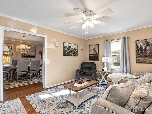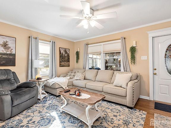 Pristine, move in condition 3 bedroom cape. Freshly painted inside and out. New gutters. Renovated sun room. Partially finished basement. Fully fenced backyard with custom stone patio and shed. Ceiling fans in kitchen, living room, sun room, and all 3 bedrooms. New windows Renewal by Anderson with transferable warranty. Refrigerator, gas range, washer and dryer recently replaced. Updated bathrooms, gourmet country kitchen opens to a large dining area. Hard wood floors. Water filter system. Charming South Bound Brook area. Convenient to stores, schools, train, shopping. Quick closing preferred. Dining room chandelier excluded.