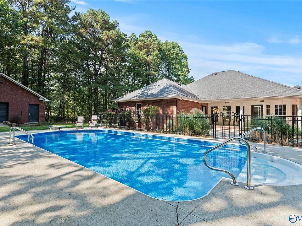 NEW PRICE & 2 YEAR HOME WARRANTY!! ADJOINING LAND AVAILABLE FOR PURCHASE TOO! Tons of upgrades on a no outlet street 25 minutes to Huntsville! Situated on two lots, this property features a sparkling saltwater pool, mature landscaping, 16X36 deck, HUGE covered porch, backyard outdoor surround sound, AND.... a private outdoor shower! Interior features include spacious living areas, a well-designed floor plan, central vac system & an encapsulated crawlspace for added efficiency. A 25X30 detached full brick shop, plumbed for water and equipped with gas, offers excellent space for hobbies, projects, or storage. Additional upgrades include a security system with approx. 16 cameras indoor/outdoor.