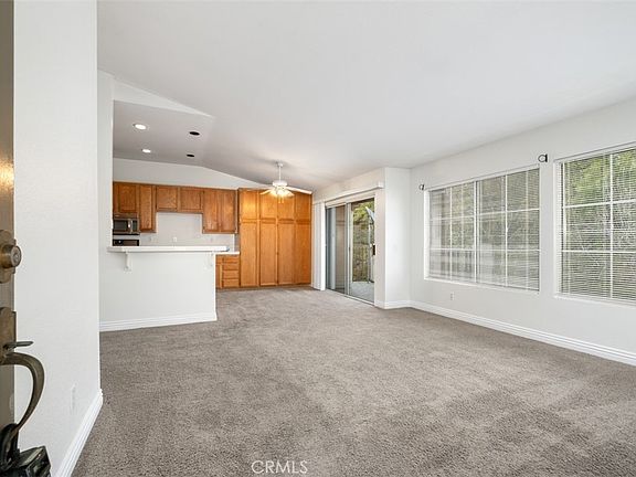 Large and open floor plan for this 2 bedroom, 2 bath end unit with views of the greenbelt. kitchen is equipped with stainless steel appliance, abundance of cabinets for storage, attached but separate laundry room and is open to dining nook. Living room boasts vaulted ceilings, fireplace, and sliding doors to the private patio. The Master en-suite bedroom has walk in closet and lots of light. One detached car garage with storage shelving. Unit has a 2nd floor entrance. The community features a pool, spa, and mature trees. Foothill Ranch is known for great shopping and parks, hiking and biking near whiting Ranch, along with easy access to the Irvine Spectrum and freeways.