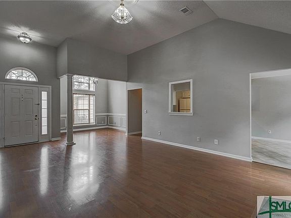 This spacious 3 bedroom, 2 bath, single story, split-floor plan home has vaulted ceilings, formal dining, 2-car garage with auto opener, and a fenced back yard. The high windows in dining areas allow for beautiful sunlight to enter the home. The spacious living room has a wood burning fireplace and wood laminate floors. The master suite bathroom has a dual vanity, garden tub, stand up shower and spacious walk in closet. Freshly painted throughout and in the heart of Pooler near the outlets, shopping, entertainment, Gulfstream, I-95 and much more.