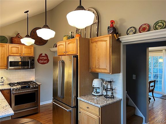 Not your average cap cod:) Totally remodeled to the studs! Kitchen with soaring vaulted ceilings, granite counter tops, gleaming hardwoods and upgraded stainless appliance. Open concept floor plan brings the kitchen and living room into a seamless expanse, creating an amazing gathering/entertaining space! Formal dining is just a few steps away and provides another wonderful design feature; Family room is entirely open to dining area and features a magnificent cathedral ceiling ..stunning! Gridded slider to large, backyard deck is just another sprinkle of design delight! 1st floor master is nestled into a more private area with updated full bath just a few steps away. Upstairs boast another full bath and 2 large bedrooms. Full bath conveniently located between the bedrooms. Hallway expands just past the stairwell to provide "niche space" for reading or desk:) Basement is partially finished with rec room (please excuse the boxes-packing has begun) lots of storage space. Backyard is a home owners oasis; fully fenced & pleasantly landscaped you'll just love the feel of all the special spaces that have been created & enhanced with the owners love of nature. All appliances are included