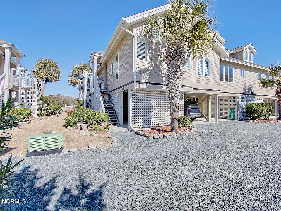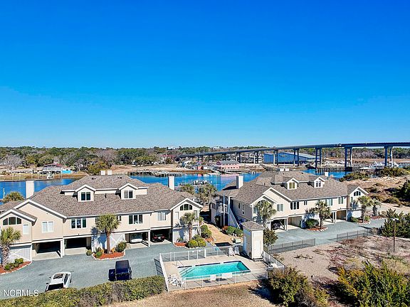 Bridgewater Townhomes are much sought after as to their unique location in the town center and each having a private dock and deeded boat slip on the ICW with No Wake zone! Completing the amenities is the inground pool! Sit on your deck and enjoy the sounds of the Summer Concerts which occur under the bridge. Next door is the town's Bridgeview Park with pickleball court, basketball court, bocce ball court, splash pad and picnic shelter! All this and just steps to the ocean by way of the access at the end of Jordan Blvd. Now hold your breath as you walk into this creatively-updated home with floor to ceiling windows which bathe the spaces in light and capture the waterway and bridge views. The cathedral wood ceilings offset the contemporary flair with warmth reflecting the beautiful hardwood floors through out. The incredible kitchen will WOW you with the Magma leather granite waterfall and backsplash, the contrasting white pearlized lacquer finished custom cabinetry topped off with beautiful Italian crafted appliances including fridge, dishwasher and gas (propane) cook stove, both cook top and oven. All appliances convey including the washer/ventless dryer. Both baths have been updated with stunning finishes including automated water faucets and a beautiful glass barn door on the hall bath shower. The closet spaces are custom designed for maximum storage. The raised home has ground level features. Here you will find a 1000 pound lift to the main level, a storage area and an outdoor shower. And, don't forget the convenience of walking to dinner with several restaurant choices in this area. Inside or out, location and convenience make this property an outstanding opportunity to live by the sea!