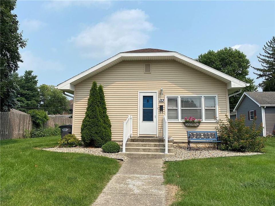 Wonderful 3 bed, 2 full bath home located in Tipton proper. Home offers nearly 1000 sqft of living space, enclosed and finished front porch, and 1 car detached garage. Major updates include new double paned windows all around (2023), new exterior siding (2013), a new roof (2019), and a fully encapsulated crawlspace (2023). This pleasant and well maintained home is in a quiet neighborhood, within walking distance to the heart of Tipton.
