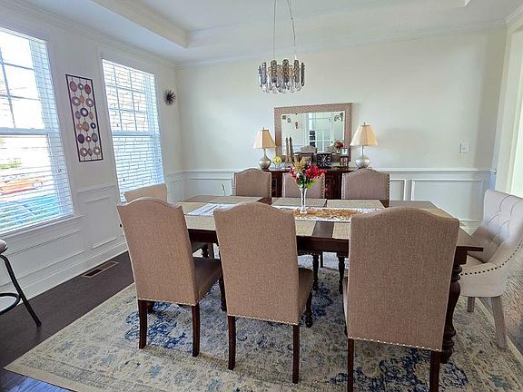 Absolutely beautiful home in great a Apex neighborhood! Community pool & playground within walking distance of the home! Rocking chair front porch welcomes you home! Stunning entry with a view straight to the backyard! Formal dining room with great wall space! Private downstairs office with French doors! Two-story family room with tons of natural light! Upgraded kitchen with great cabinet/countertop space, eat-at island, pantry, and eat-in area! Downstairs bedroom & full bathroom! The primary bedroom is large with two walk-in closets and two linen closets! The primary bathroom has a dual vanity, soaking tub & separate shower! Three additional bedrooms upstairs, bath & laundry room! Oversized 4-season porch! Fully fenced backyard! Washer/dryer included! Home has solar panels that reduces your monthly payment to almost nothing!