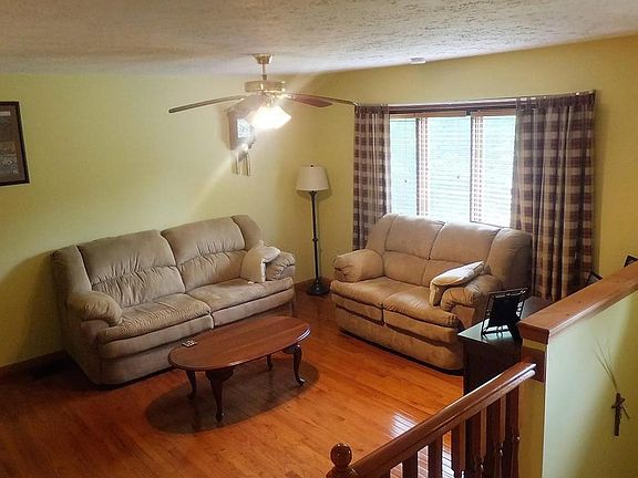 Looking for privacy, let this meandering driveway take you home! Located in a cul-de-sac is this Spacious home offering 4 bedrooms, 2.5 baths, beautiful hardwood floors in Dining Room, Living Room, Breakfast Nook and Hallway, Ceramic Tiled baths. Large family room with brick wall and flue for supplemental heater. Paved driveway with ample parking and gravel pad for RV with electric hook-up. 3 oversized garage bays. Rear deck, large yard with swing set and much more! All on over 2 acres of property. Schedule your appointment today.