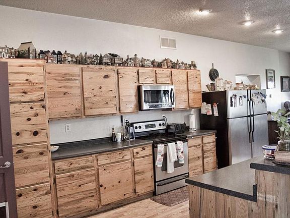 Converted Air Force Mess Hall building. 3200 Square Feet on one level - 3 bedroom 2.5 bathroom - off street parking - Shed with electricity and large roll-up door accessible from the Outside for motorcycle / 4 wheeler/riding mower - large rear deck -large open kitchen -large pantry - good size office / storage room - large living and dining area - mudroom/laundry room located in Vista West Subdivision in Sundance WY. Call or text for more information or possible showing. $200,000 with 10% Down Owner Will Carry Contract, Terms Negotiable Also $3,500 2 week rental for Sturgis Bike Rally, or $5,000 monthly for Hunting Season rental. Call / Email for details johnr82718@gmail.com or johnr82729@gmail.com 307-660-7430