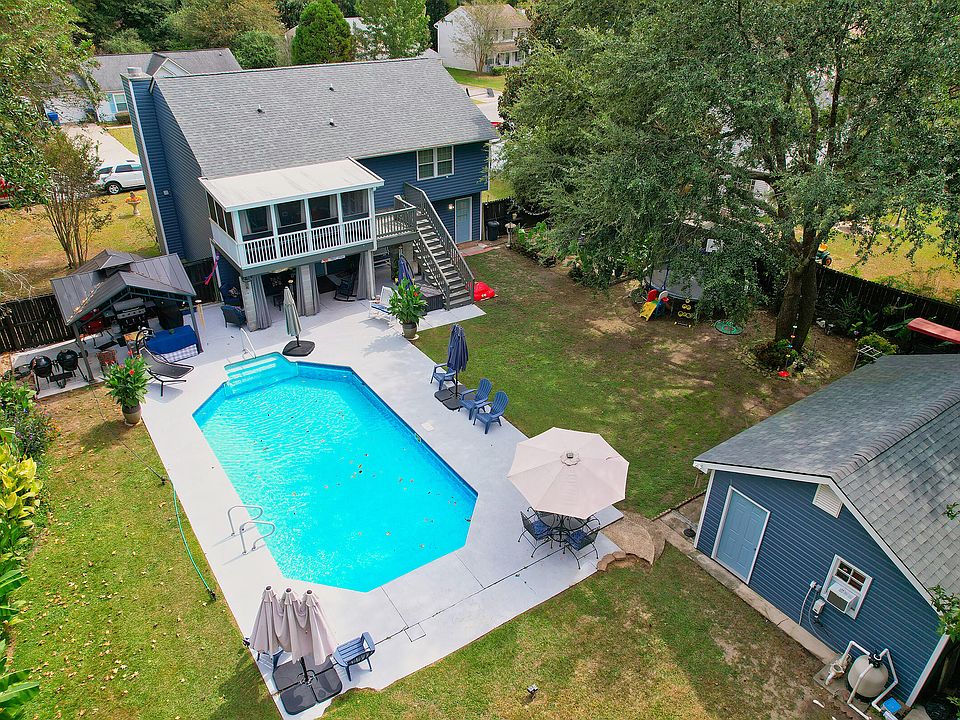 If these walls could speak... what a tale they'd tell... of laughter... love... fellowship... and hospitality. They'd echo the music of little feet and squeals of laughter from the children (and now grandchildren), massive get-togethers and celebrations w/ family & friends. Late afternoons outside...the smell of food on the grill, the sound of splashing and playing in the pool, and the feeling of sun-kissed skin. Hours in the pool until your fingertips are raisins. The joy of changing into dry clothes and finding a place to nap and there's plenty of space for that. Man, that's a good kind of tired. Just a few minutes in this home and you'll feel it. You'll see it. You'll hear it. Decades of extravagant love and hospitality for family and friends.It's time for another family to come in and continue the legacy of love and hospitality. You'll enjoy the outdoor living by the pool, entertaining on extensive patio, deck, sunroom, and yard. Tinkering in the 24ft x 16ft workshop. You'll have plenty of entertainment space downstairs in the living area/craft room and the converted Rec/Gameroom. There's also a bedroom, half bath, and laundry room downstairs. Walk upstairs and you'll find another family room with fireplace, kitchen, dining room, full hall bath, Owner's Suite, and two additional bedrooms. The Sunroom is located just off the dining room upstairs and overlooks the gorgeous, lush backyard. You'll enjoy the proximity to historic downtown Summerville, county parks, historic Charleston, Joint Base Charleston, Boeing, Bosch, local beaches & rivers.