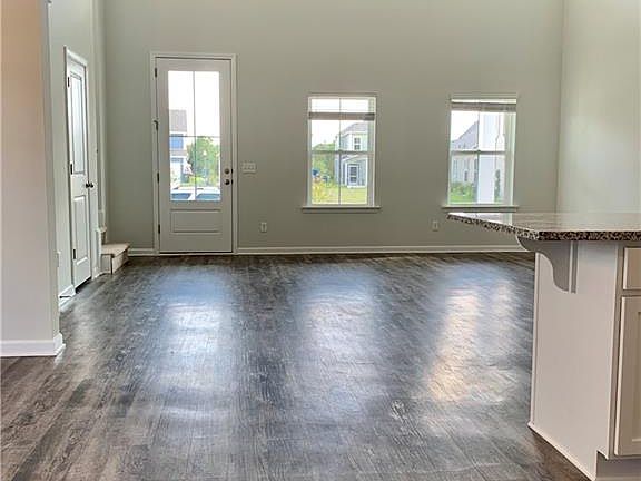 MOVE IN READY!!!! Upon entering this home, you are greeted by an 8 foot front door that will lead you into a spacious two story great room provides plenty of light and airy space and is open to the kitchen. The kitchen offers a farm sink, granite countertops, island and all stainless steel appliances. The dining area has a beautiful bay window and crown molding trim. The owners suite is located on the first floor and has a trey ceiling for extra details. The owners bath provides double sinks, private water closet, linen closet and a large walk in shower. The stairs will lead you up to two more bedrooms and another bathroom. Plus, the upstairs hallway has open railings that over look the great room.