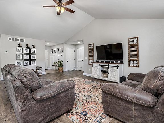 LOCATION, LOCATION and WOW! Enter through the front door of this Brush Creek beauty to an inviting entry way, leading you to a living room with newer vinyl plank flooring. Main floor includes a master suite with tray ceiling, custom tile shower and HUGE walk-in closet. Across the home, find two additional bedrooms and one full bathroom. Kitchen boasts ample cabinet space and access to a deck, overlooking over 2 beautiful acres, with room to run and explore! Downstairs, a large family room is carpeted for comfort. Bedroom four includes a walk-in closet. A second primary bedroom is located across the lower level, with trendy en suite. A laundry room, complete with utility sink and separate spacious storage room round out the lower level. Head to the backyard to find a fenced yard, followed by natural wooded area, abundant with wildlife. Located just minutes from I-44 and Fort Leonard Wood, this home is conveniently located in a subdivision, still with privacy. Freshly painted!