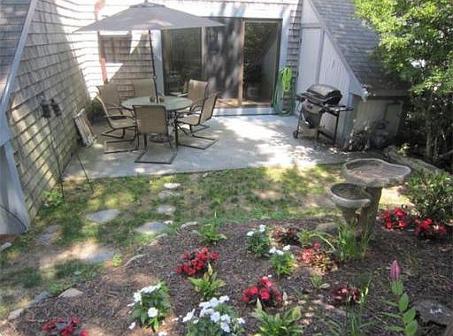BREWSTER - The Colony - Really nice condominium with sparkling wood flooring on both levels except tile in the bathrooms. The first floor offers an eat in kitchen with granite/marble counters and a sun filled dining area plus a spacious living room with an area for a dining table. Gas Fireplace fills the room with warmth when needed and sliders open to a private patio and garden area. a 1/2 bath finishes the first level. The second level offers 2 bedrooms, laundry area, full bath and a pull down staircase for extra storage. Natural gas heat and a solid budget for the Association. $450.00 per month are the condo fees and that includes the interior and exterior pools, sauna, Jacuzzi type hot tub, racket ball court, gym, tennis, basketball, ladies and gents locker rooms with showers and a good sized common room for gatherings with a full kitchen. Great Complex for year-round living or a great Cape getaway.