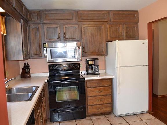 This beautiful home is ready for some new owners to make new memories. In a great neighborhood near parks and shopping. This raised ranch has lots of great features. 2 newly remodeled bathrooms, 4 spacious bedrooms, 2 stone fireplaces with natural gas inserts to supply efficient heat. The 2 car attached insulated garage has lots of extra space with a workshop area. The dining area has patio doors leading to a roomy deck with a Sun Setter awning for those hot Summer days. The Family room has a large wet bar with a built in refrigerator. There is a large back yard with a 8x10 storage shed and perennial gardens. This home is heated with clean, efficient electric baseboard heat which allows you to control the temperature in every room. Included in price are all appliances (refrigerator, stove, dishwasher, microwave, washer & dryer,) bar chairs and the Sun Setter deck awning.
