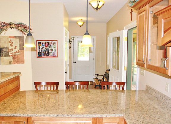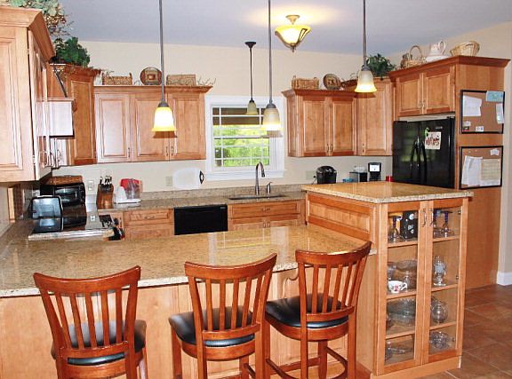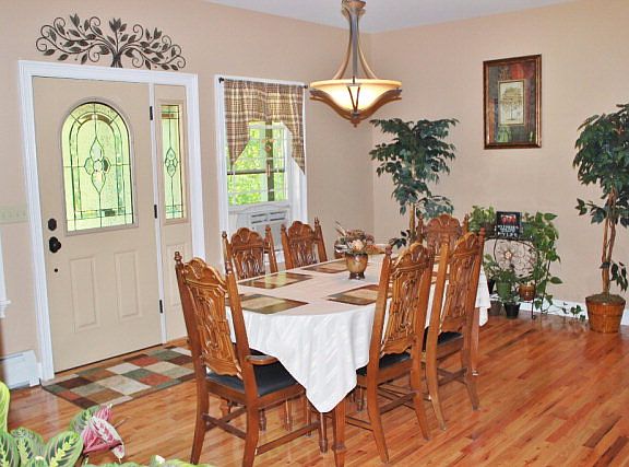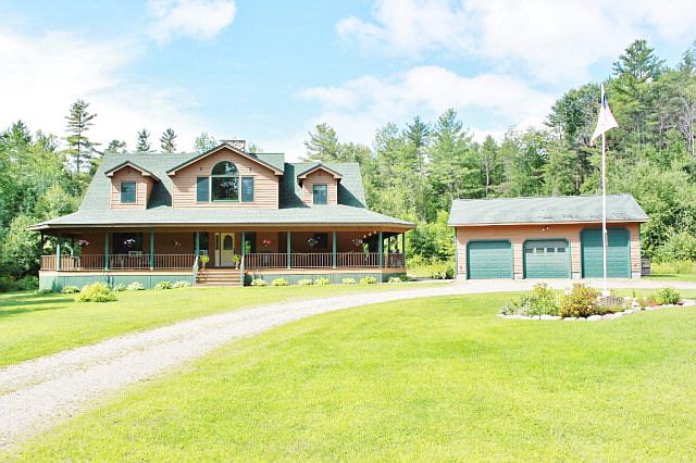 Large well maintained Ranch 3 car heated garage on 4.5 acres on quiet Country Rd. Lower level is completely finished w tile floors. 8 log construction, generator ready, garage 100 amp service, electrical w hot air furnace, footer under large deck if new owner would like to add a screened porch or sunroom, cleared & wooded lot. Very private back yard.