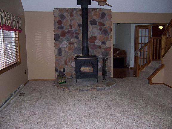 - FIREPLACE: Wood Burning, Free-Standing, Raised Hearth, Stone
