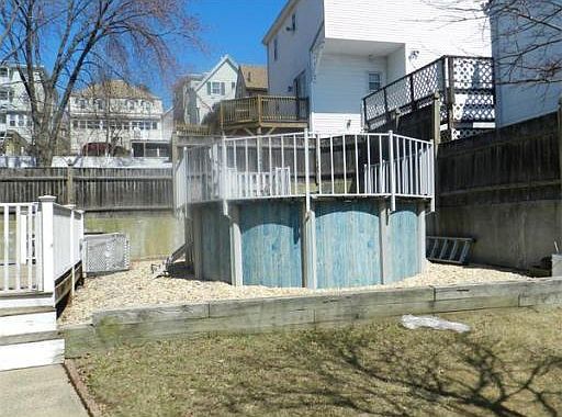 Beautifully maintained home in the Beachmont section of Revere. Modern eat in kitchen with stainless steel appliances and pergo flooring, large living room which leads into a large entryway for additional seating or possible side office and charming first floor bath with wainscoting and pedestal sink. Huge sunlit master bedroom with skylight and large closet, 2 additional bedrooms one with skylight and hardwood under and second floor full bath. Enjoy this great yard for summer entertaining with large patio and above ground pool and enjoy watching the sunset over the Rumney Marsh. Super convenient location minutes to school, train, beach, shopping and highway access. Newer heating system, Massport windows, electric updated to 100amp c/b service Feb. of 2014. Nothing to do but move in! 24 hour notice required for showings.