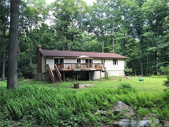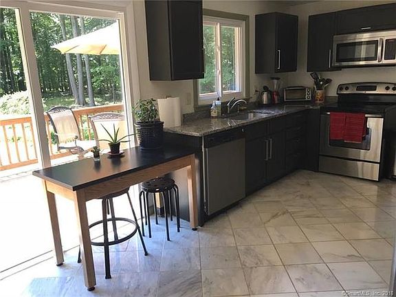 Less than two miles to UConn is this 3 Bedroom, 3 full bath raised-ranch, on 1.5 acres. Upstairs is a large fireplaced living room, newer kitchen with granite, tile and stainless-steel appliances. Refinished hardwood floors and tile throughout. Lovely deck off the rear of the house for relaxing or entertaining with 2 new sliding doors entering to the kitchen and dining room. Finished 900 sqft lower level has nice light-filled fireplaced family room, possible 4th bedroom or office with walk-out, and a bath with Jacuzzi jetted bath tub. Roof is only 4 years old and the septic system was replaced in 2011. Recent updates include furnace, hot water heater, well tank, and electrical service. Improvements in the last year include: refinished hardwood floors, interior painted minus kitchen and family room, electric baseboard heat in basement changed over to oil, 10+ trees removed, and 2 sliders, 4 windows, and 3 interior doors replaced. Lovely quiet neighborhood with easy access to shopping and restaurants.