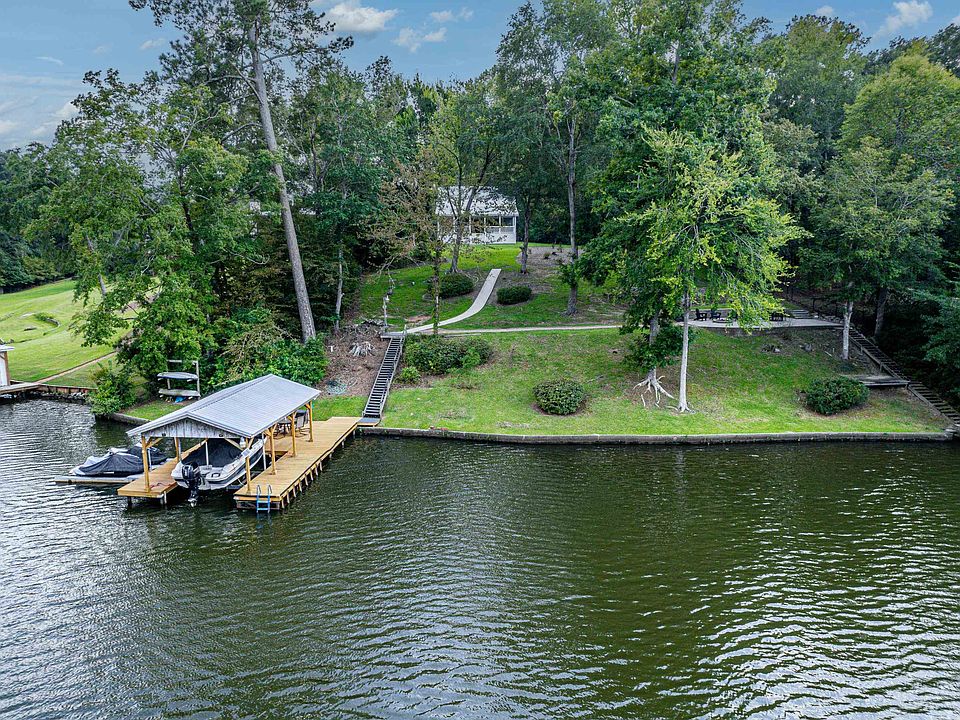 GREAT HOUSE - HUGE VIEWS - AWESOME LOCATION!! This Lake Sinclair home is just what you've been looking for... THE PERFECT LAKE RETREAT! This 3 bedroom, 2.5 bath home is on a nearly 2 acre lot in a great neighborhood, known for beautiful homes, calm waters and relaxing vibe - but still very convenient to everything! Whether you are looking for the perfect lake retreat, full-time home or your next investment, this home checks all the boxes! The interior features a primary suite on the main level, an open concept with a kitchen and bar-top for extra seating/hosting, a large living room with a wood burning fireplace and half bath. Upstairs there's two additional bedrooms that share a bathroom and have attic storage. On the exterior of the home, there's a large porch that is perfect for evening cocktails and enjoying beautiful lake vistas. Down at the shoreline, there's a large fire pit/patio area, a single boathouse with deep water access and a separate swim dock. There's a big attached carport with storage and separate shed on the roadside. This home is sure to be one to look at if you're thinking of a place at Lake Sinclair! Call today and let's get you SOLD on Sinclair!!
