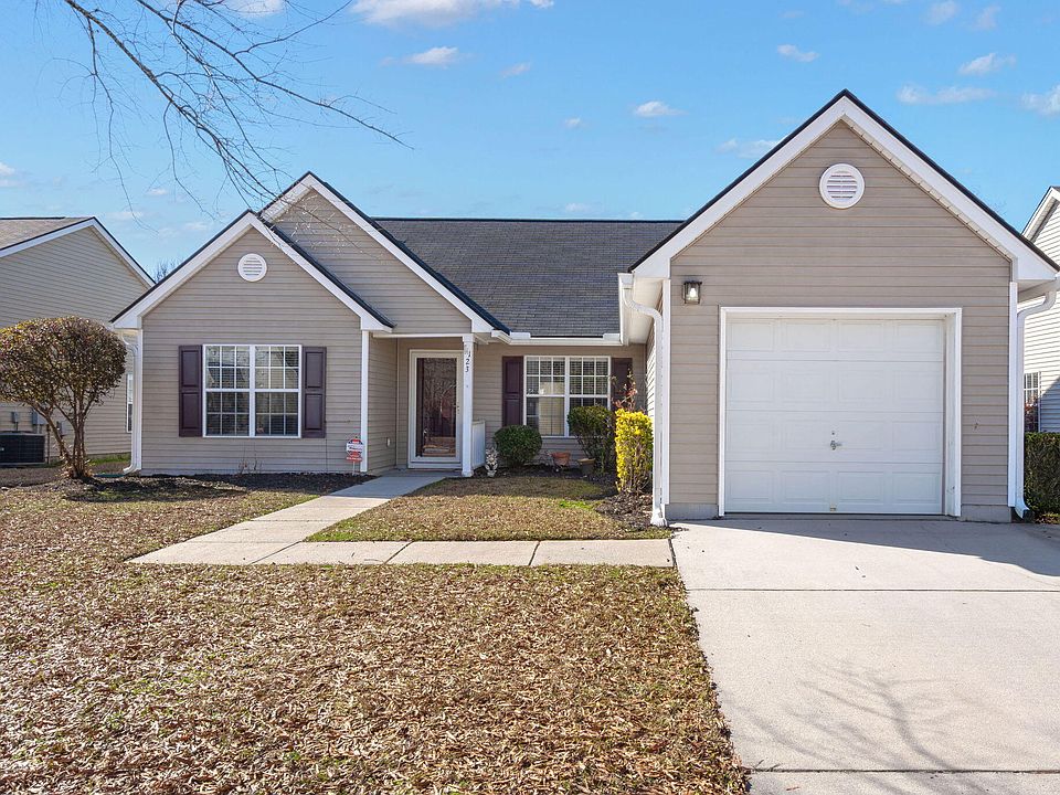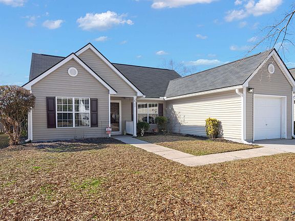 This charming ranch home is nestled on a pond-front lot in a quiet neighborhood. As you enter, you'll be greeted by handsome wood floors, vaulted ceilings, and a bright open floor plan with a great flow for entertaining and everyday living. The formal dining room will be perfect for dinners with family and friends. The eat-in kitchen boasts ceramic tile flooring, granite countertops, and a stylish subway tile backsplash. Refrigerator to convey, with an acceptable offer and as part of the sales contract. The spacious master bedroom features a walk-in closet and a private en-suite bathroom, with a walk-in shower. Enjoy your morning coffee from the three season room/sun porch, overlooking the backyard.The patio and fenced-in backyard will be perfect for grilling out, entertaining, or watching the kids and/or pets play. You'll appreciate neighborhood amenities, including a community pool and play park. Conveniently located near shopping, dining, the interstate, and Historic Downtown Summerville. Come see your new home, today!