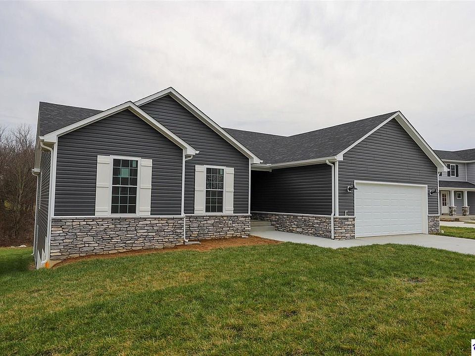 Fall in love with this luxurious new home that is loaded with style and attention to detail! This open concept home features vaulted ceilings throughout the great room & dining area with an elegant handscraped hardwood flooring. The beautifully appointed kitchen is extra special to include Navy cabinets, granite countertops, a center island and a pantry area with barn doors! The master suite features a trey ceiling, an oversized walk in closet, his n her's vanities, tile shower, soaking tub and white cabinetry. Other features of this home include a split bedroom floor plan, a mudroom drop zone area and an open staircase to the basement with wrought iron spindles. The walkout basement is mostly finished to include a large family room, a sitting area, the 3rd full bathroom and the 4th bedroom with an impressive walk in closet! This home is gorgeous and has the "Wow" factor. Schedule your viewing today!